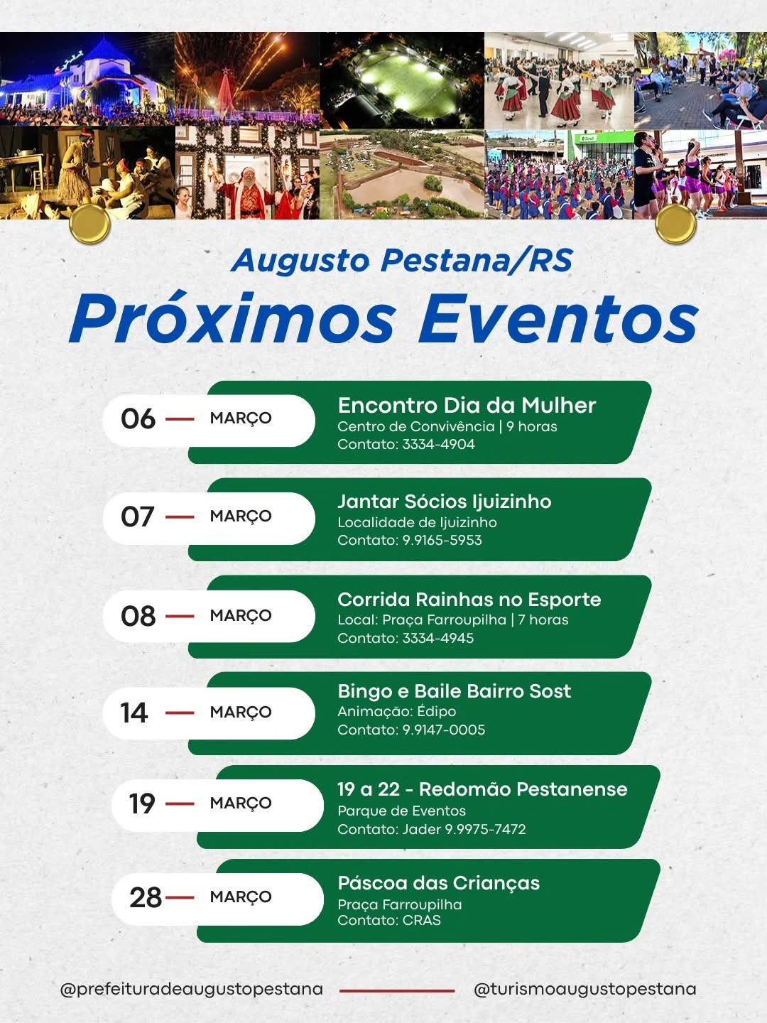 EVENTOS DE MARÇO 2026 Prefeitura Expirado 10 Mar - 2026 · 08:43 > 10 Mar - 2026 · 08:43 AUGUSTO PESTANA EVENTOS DE MARÇO 2026 (Foto: Reprodução)