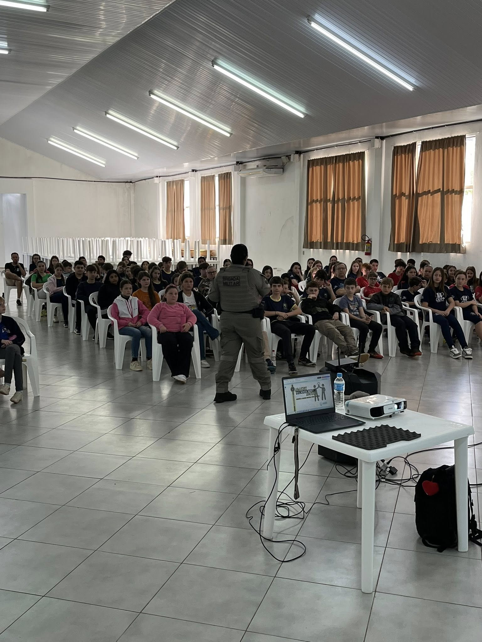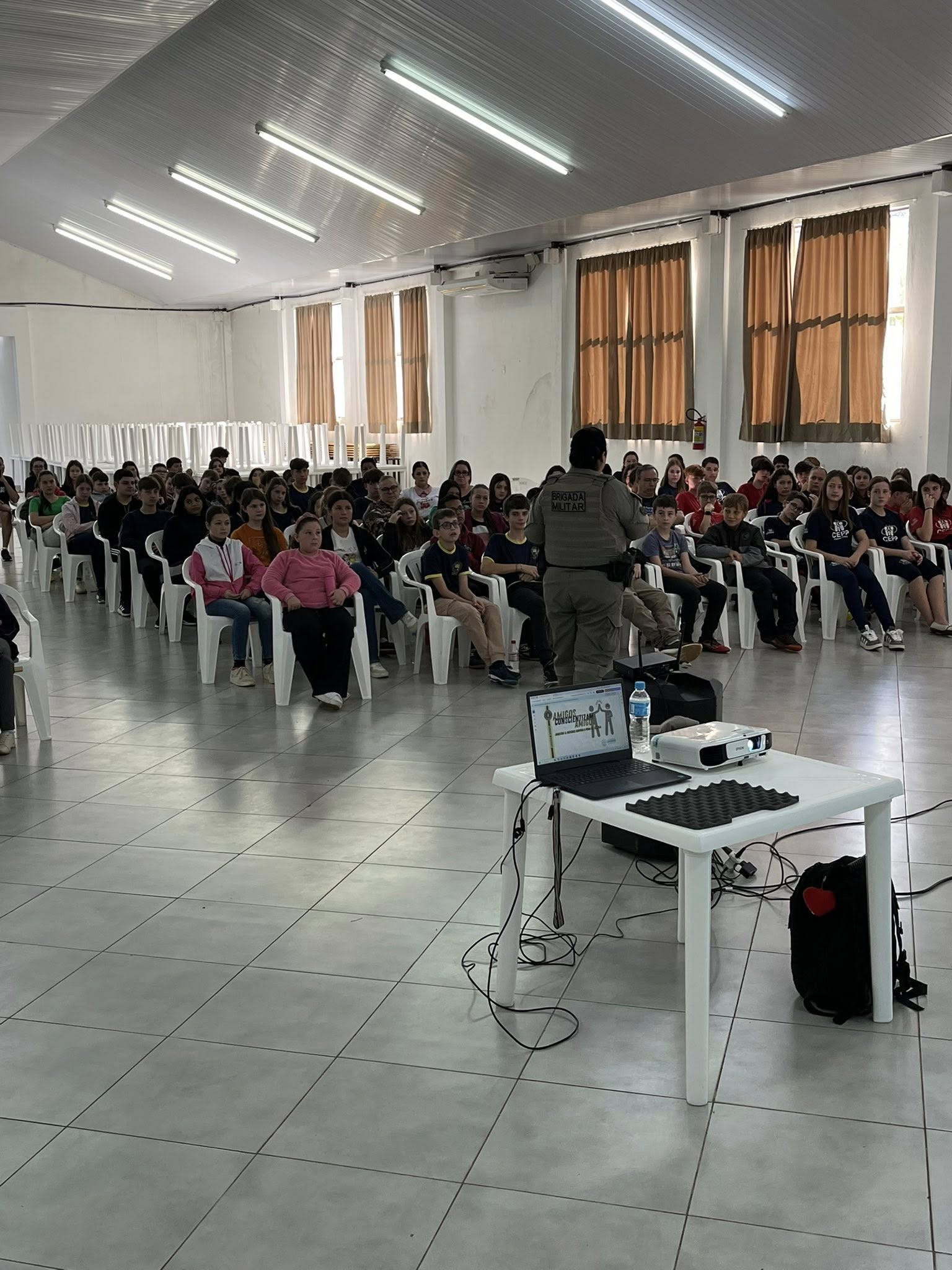 Na manhã desta quarta-feira, alunos tiveram um encontro com a Brigada Militar, representada pelo Comandante de Augusto Pestana Tenente Schmidt pela Soldado Cristina Ferreira, mentora do Proerd, e pelo Sargento Facin e Gilnei integrantes da patrulha escolar. A ação foi destinada aos alunos da rede municipal e aos estudantes do CEPP, com o objetivo de promover a Prevenção às Drogas e à Violência.