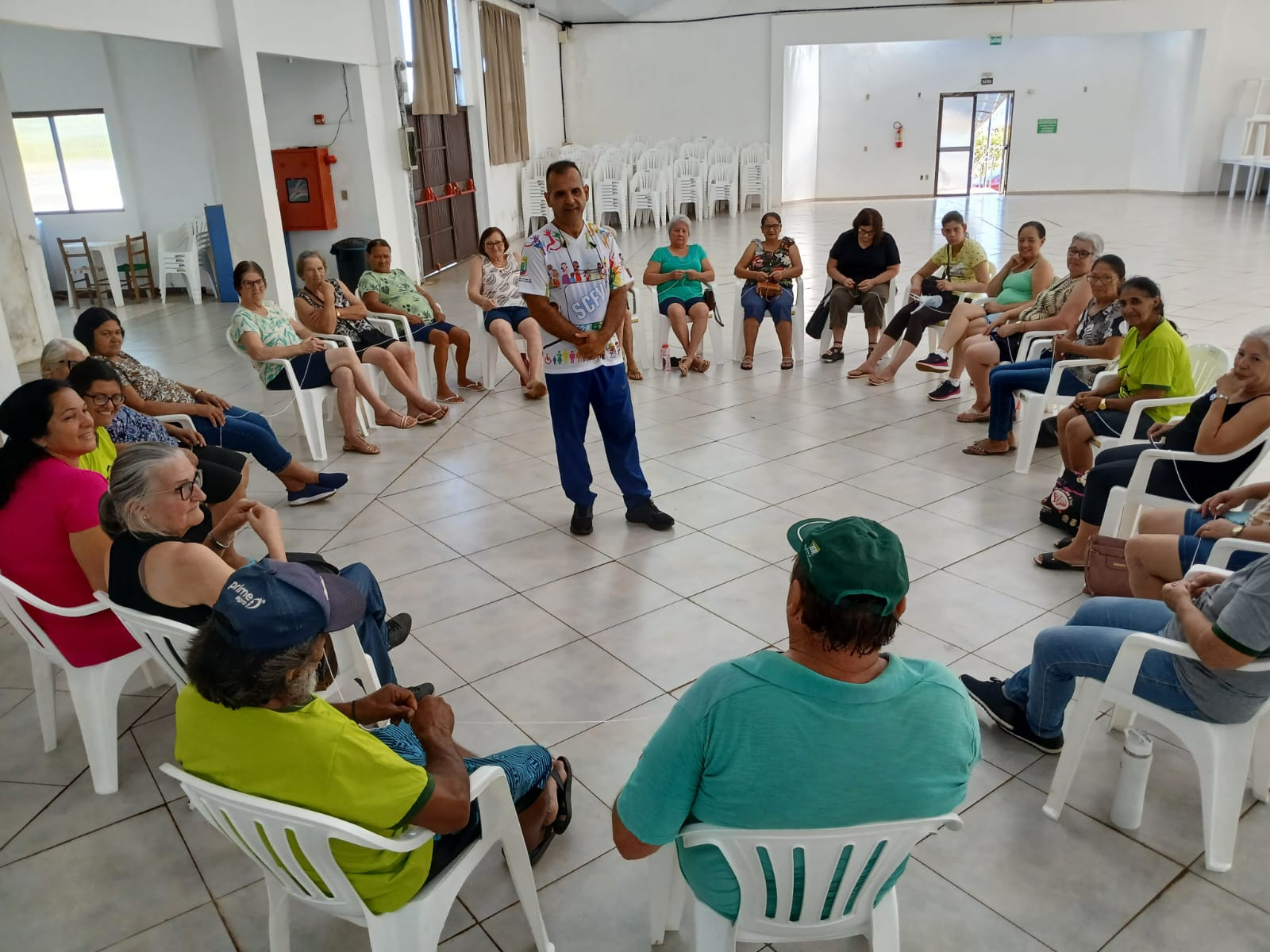 As atividades ocorreram no Centro de Convivência em dois momentos, atendendo crianças, adolescentes, adultos e idosos participantes dos grupos da cidade.