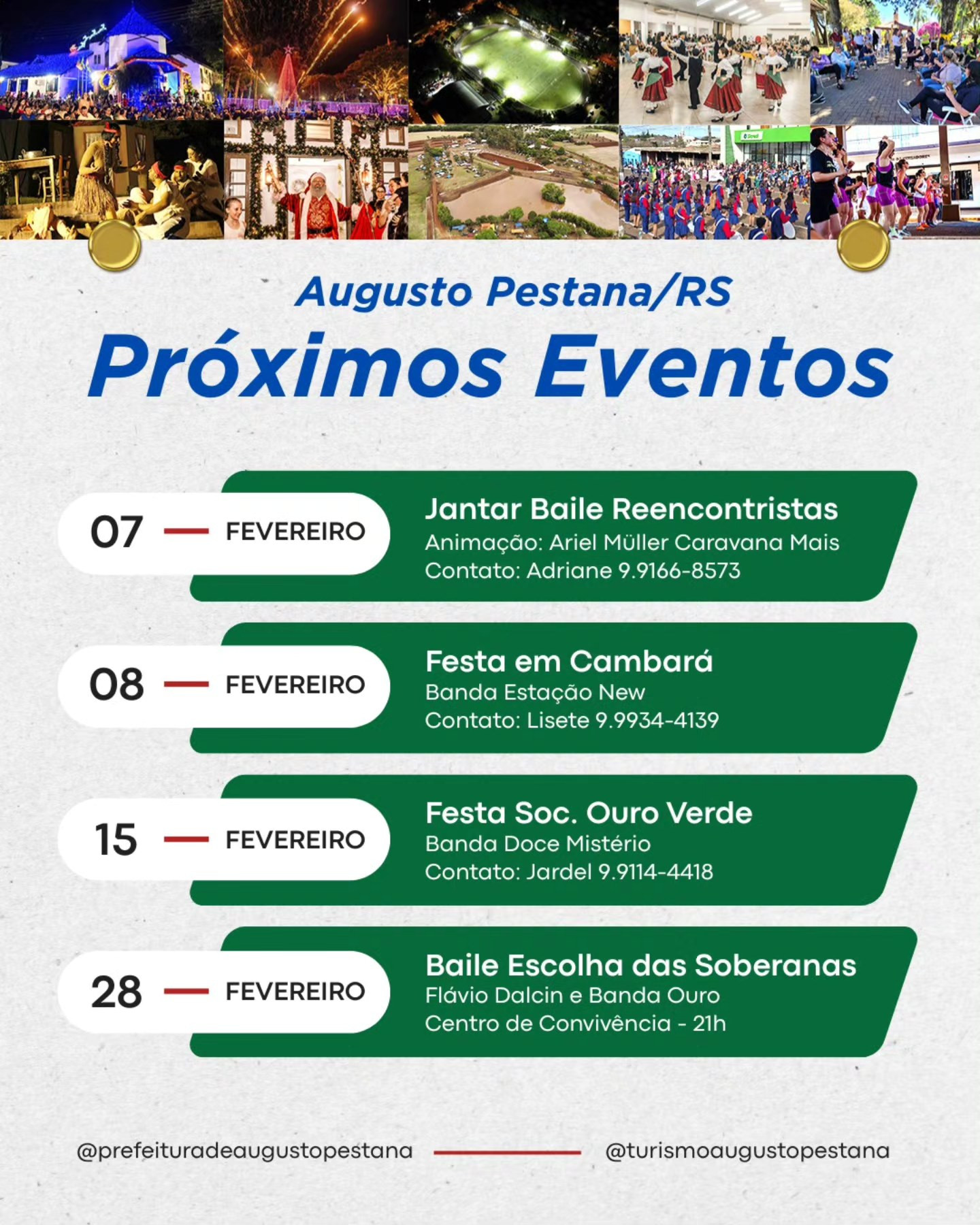 Eventos do mes de Fevereiro em Augusto Pestana Municipio de Augusto Pestana 07/02/2026 06:53 | Atualizado há 12 horas atrás Eventos do mes de Fevereiro em Augusto Pestana (Foto: Reprodução)
