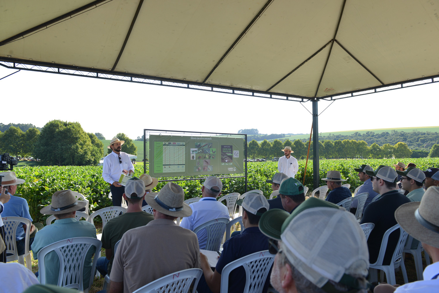 Realizado no Campo Experimental da Cooperativa, em Condor/RS, o encontro reuniu centenas de visitantes em um ambiente voltado à prática. Nas estações de pesquisa dedicadas à soja, os participantes puderam acompanhar de perto soluções pensadas para elevar a produtividade, garantir sustentabilidade e aprimorar o manejo da lavoura.